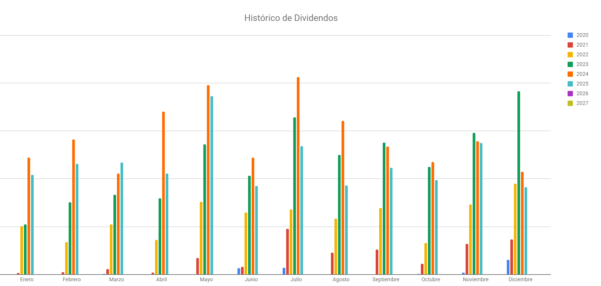 Debido a la salida de capital que tuve que hacer el año pasado, por primera vez, los dividendos cobrados fueron inferiores al año anterior. En el resumen de 2024, hice una estimación de que la cantidad de dividendos a cobrar en 2025 sería entre un 15-20% inferior.